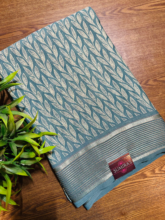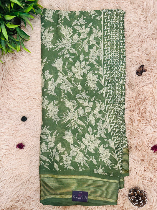 Leaf Green Mul Cotton Hand Block Printed Saree