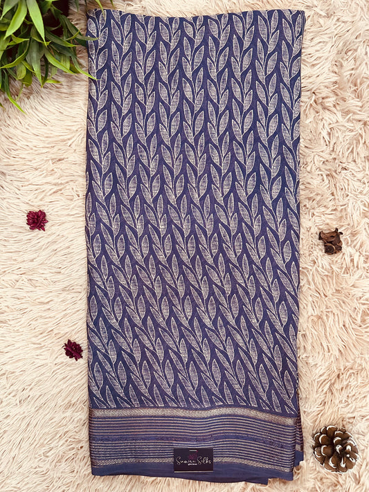 Daffane Blue Chanderi Cotton Ajrakh Printed Saree