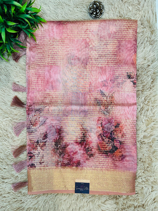Pink Chanderi Cotton Ajrakh Printed Saree
