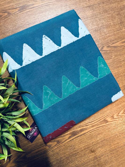 Blue Chanderi Cotton Ajrakh Printed Saree