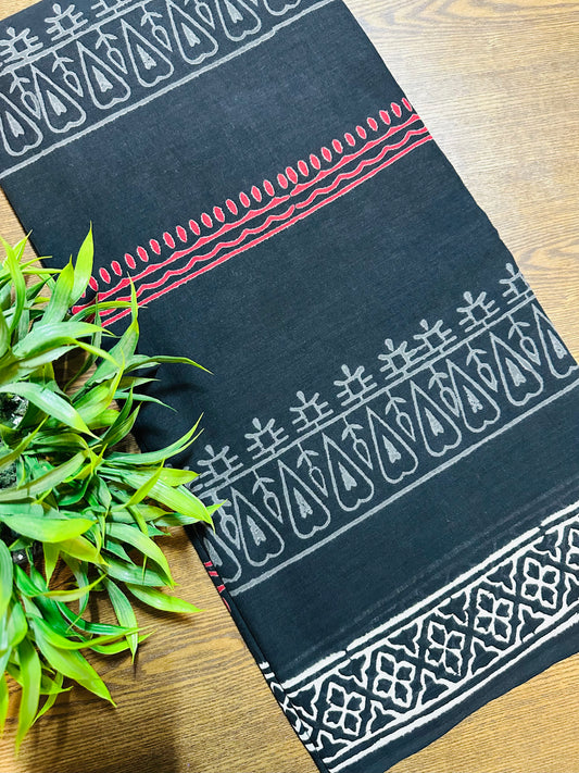 Maroon Pure Mul Cotton Hand Block Printed Saree