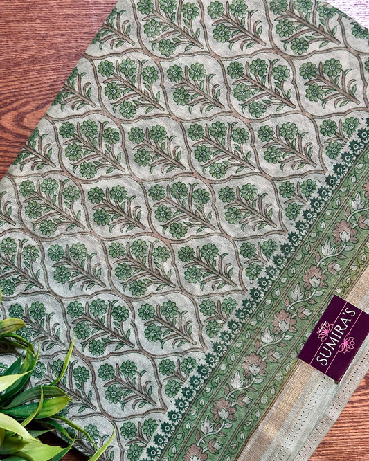 Dark Grey Chanderi Cotton Ikkat Printed Saree