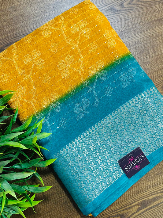 Mustard Chanderi Cotton Ajrakh Printed Saree