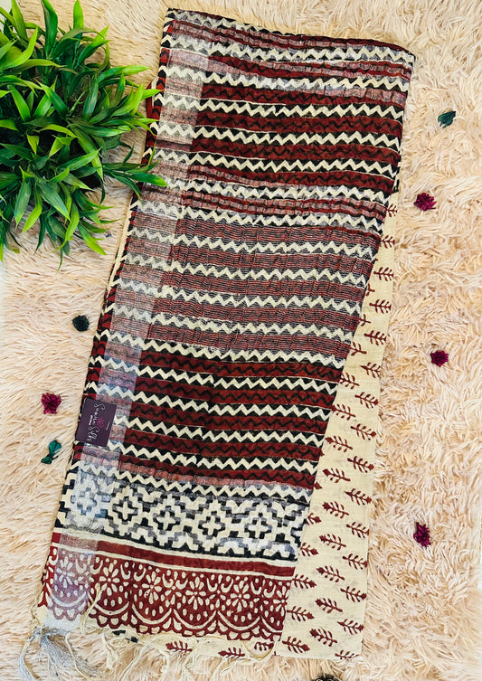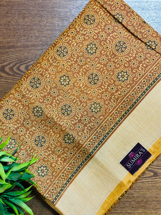 Mustard Chanderi Cotton Ajrakh Printed Saree