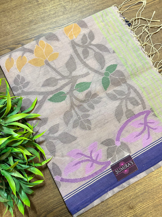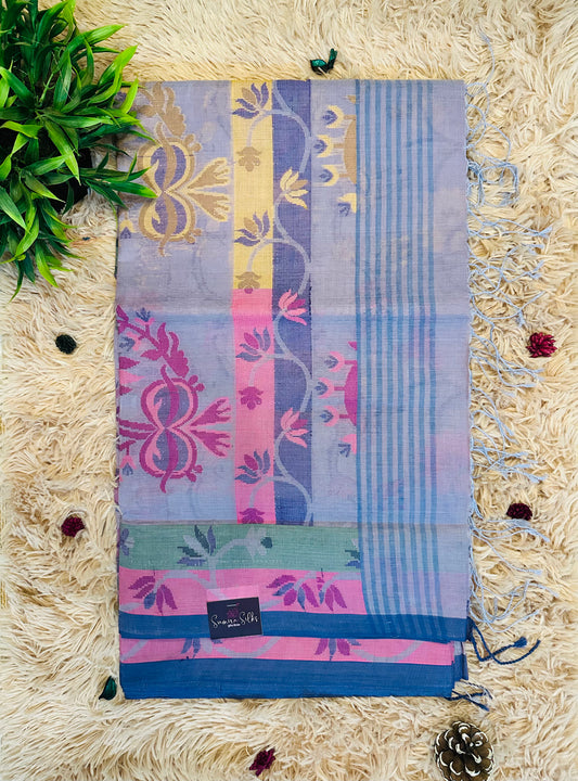 Ink Blue Pure Handloom Cotton Jamdani Saree