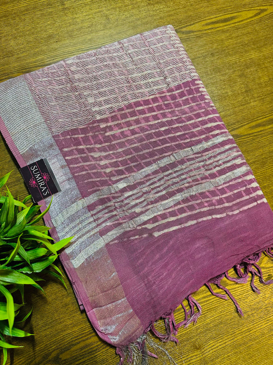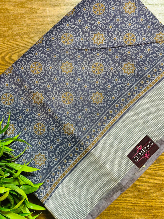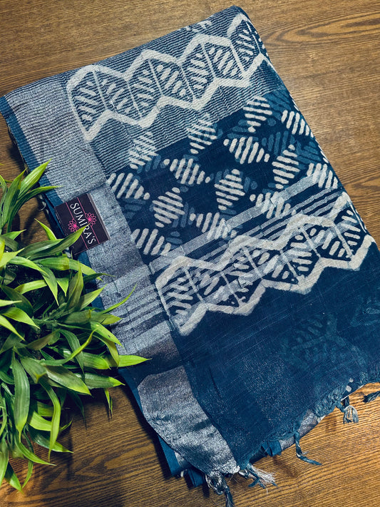 Navy Blue Linen Cotton Ikkat Printed Saree
