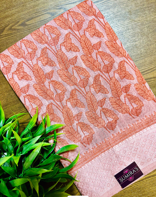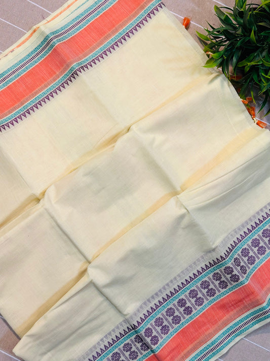 Pastel Orange Pure Mangalagiri Organic Cotton Saree