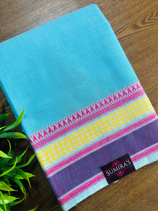 Pastel Blue Pure Mangalagiri Organic Cotton Saree