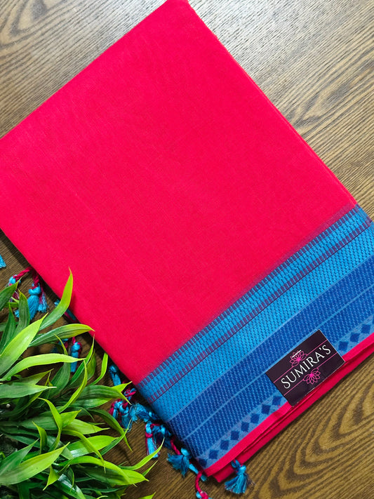 Bright Pink Pure Mangalagiri Organic Cotton Saree