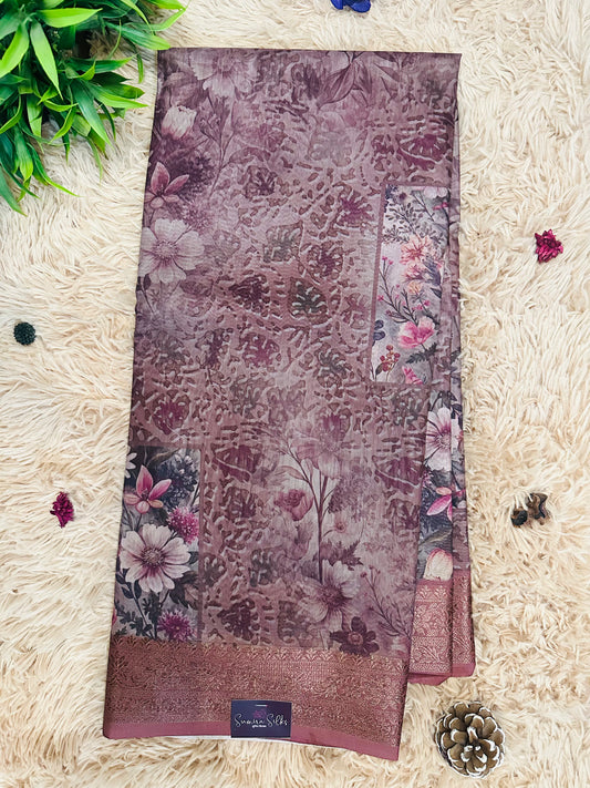 Mauve Soft Cotton Silk Saree