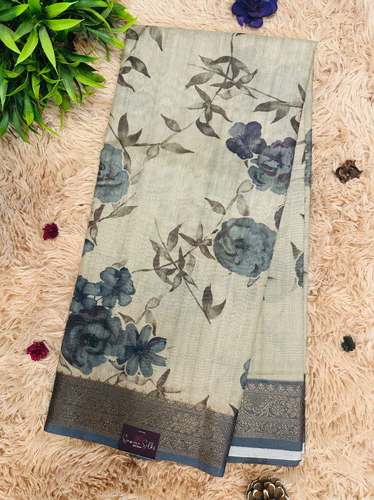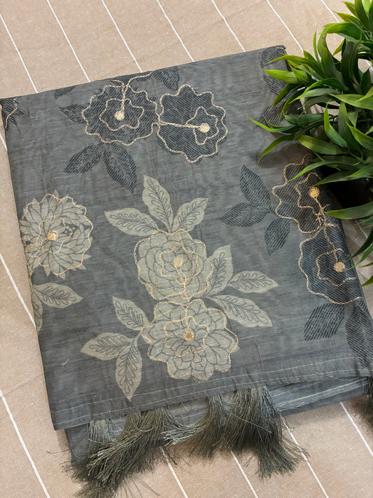 Grey Soft Tussar Silk Saree
