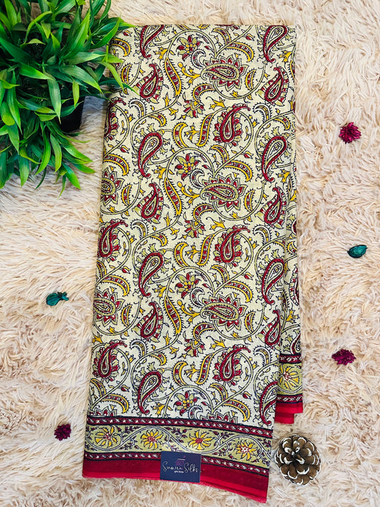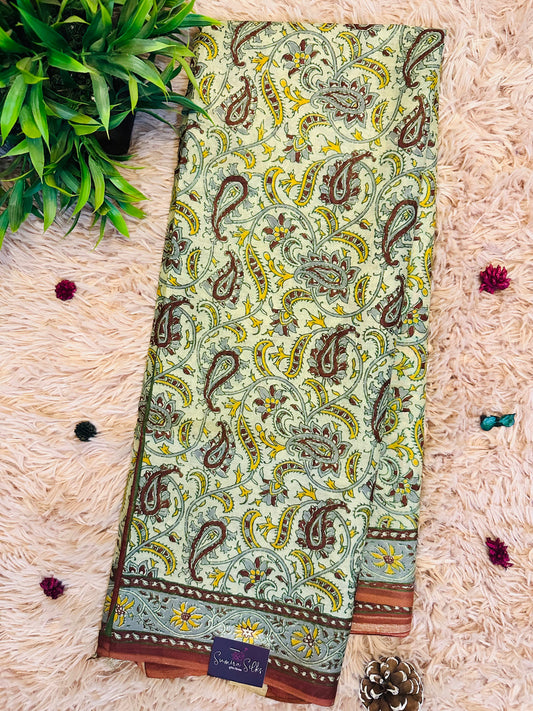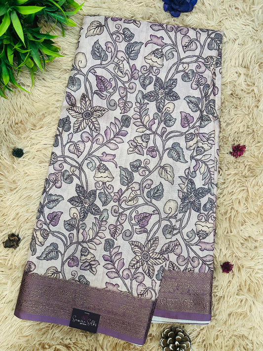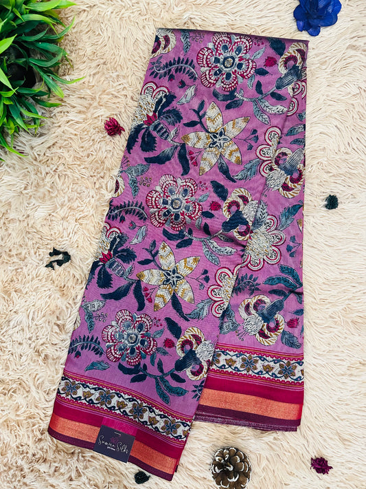 Mauve Kalamkari Soft Cotton Silk Saree