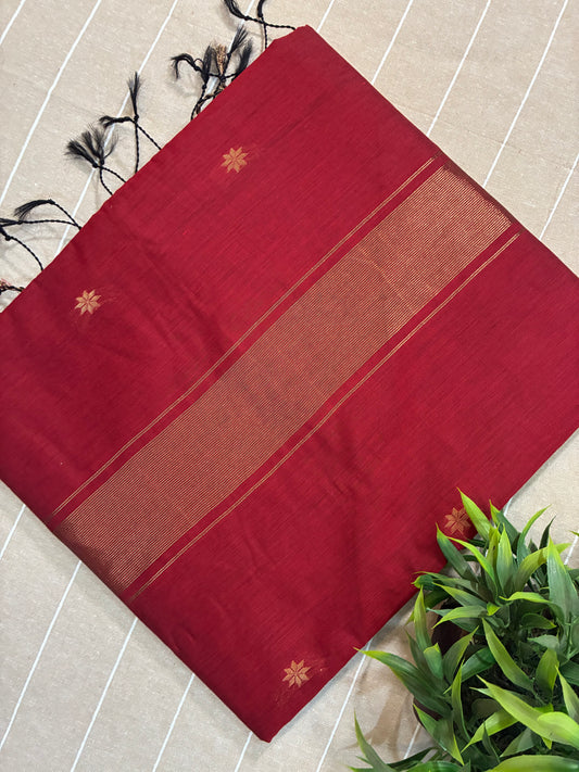 Deep Red Maheshwari Cotton Silk Saree