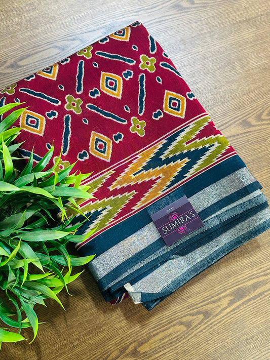 Maroon Maheshwari Cotton Saree