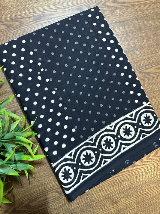Black Pure Mul Cotton Hand Block Printed Saree