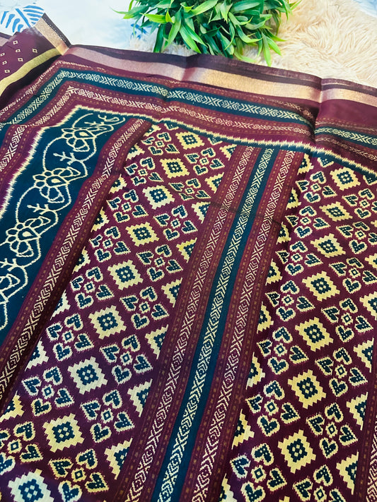 Peach Floral Patola Silk Saree
